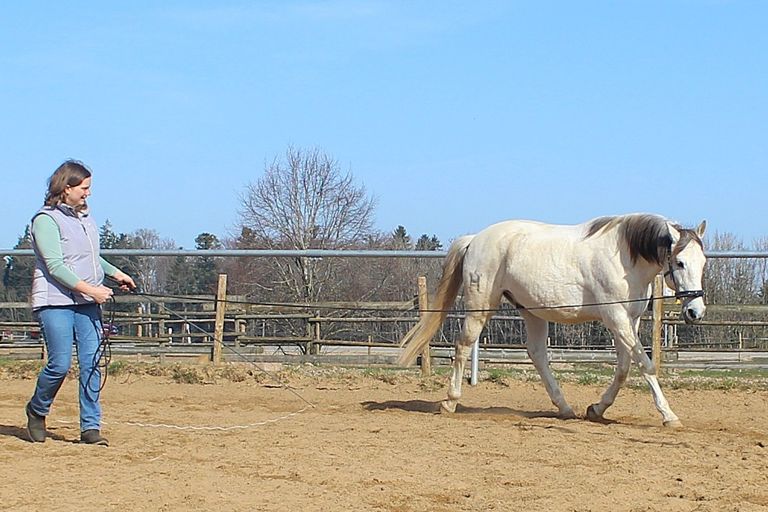 Diese Art des Longierens eignet sich sowohl für Jung- und Rehapferde, als sinnvolles Training für ausgebildete Reitpferde an reitfreien Tagen und um bestimmte Problemstellungen (z.B. Klemmen, Bocken) anzugehen. Dabei gehe ich besonders auf eine für das Pferd logische und leicht verständliche Hilfengebung durch den Menschen ein. Dadurch wird die Freude an der gemeinsamen Bewegung gefördert.